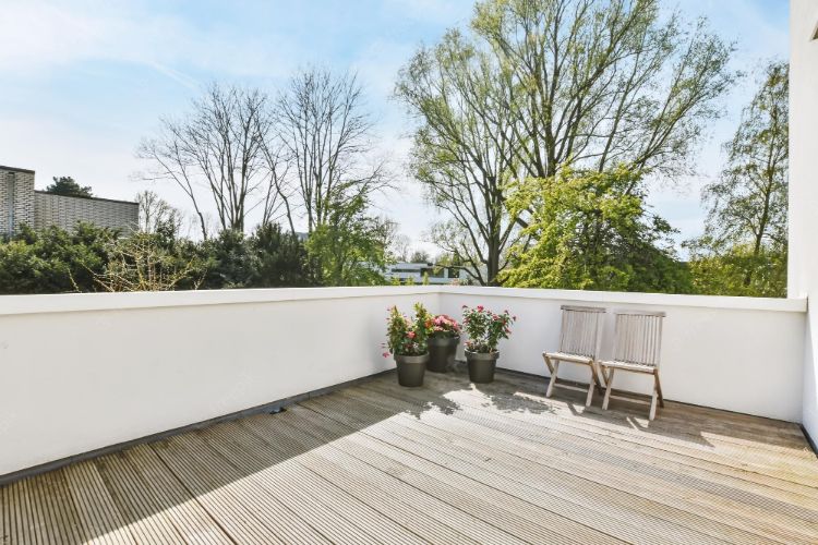 Desain balkon ramah dan nyaman ini sangat cocok untuk Anda yang memiliki rumah kecil dan tidak banyak penghuni di dalamnya sehingga mendapatkan intimasi lebih.