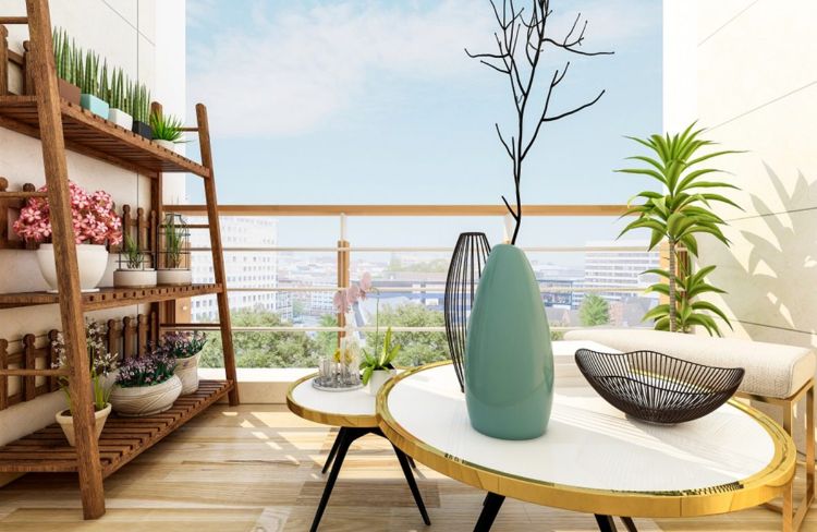 Balkon yang satu ini juga bisa didesain dalam ruangan antara yang sempit. Anda bisa menempatkan beberapa pajangan di sudut ruangan seperti tanaman hias dalam pot, botol-botol antik, dan yang lainnya.