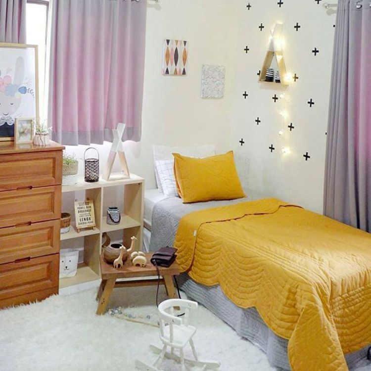 Kamar tidur yang sempit juga bisa disulap agar tampak lebih kekinian dan nyaman dijadikan tempat beristirahat. Usahakan untuk menggunakan single bed dengan tujuan menghemat space. Dengan begitu, bisa menambahkan beberapa furniture lain, seperti lemari dan rak dekorasi.