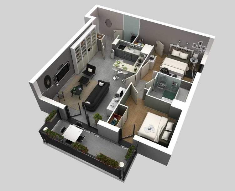 9. Desain Apartemen dengan 2 Kamar Mandi