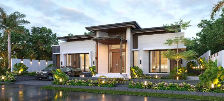 Memakai konsep rumah desain modern, rumah tersebut menetapkan tampilan rumah persegi dengan jendela yang cukup besar di bagian depan. Selain itu, perpaduan warna putih dan warna kayu membuat rumah terlihat lebih eksotis.