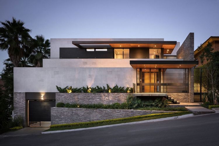 Meskipun berada di pinggir jalanan kompleks, rumah ini terlihat sangat mewah karena desainnya yang menarik. Di bangun di atas lahan yang berjenjang, Anda bisa menempatkan garasi mobil di bagian bawah rumah agar lebih mudah diakses.