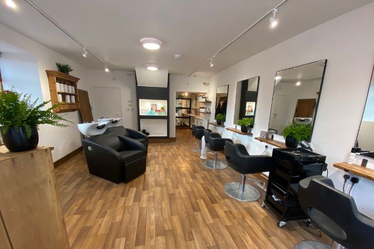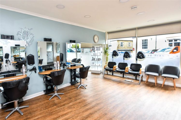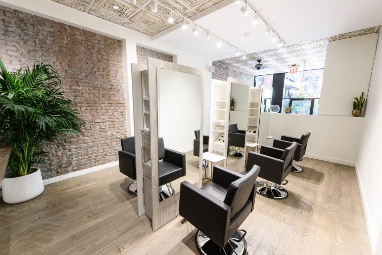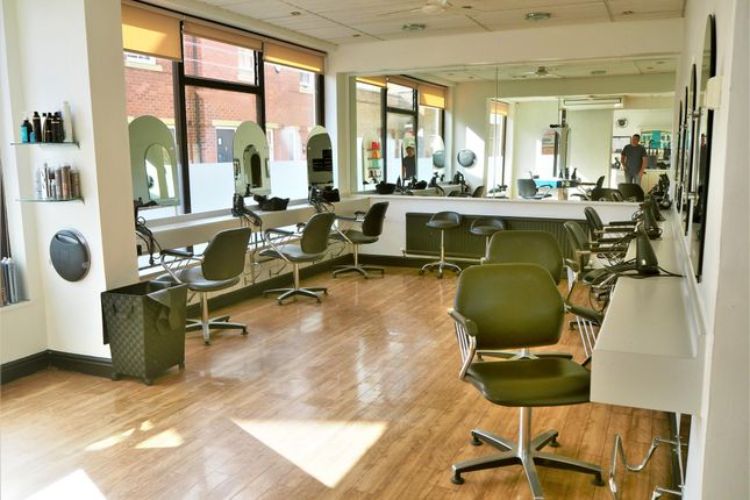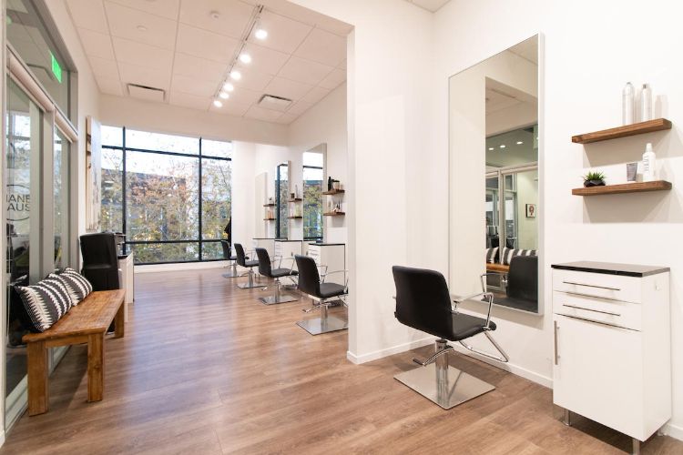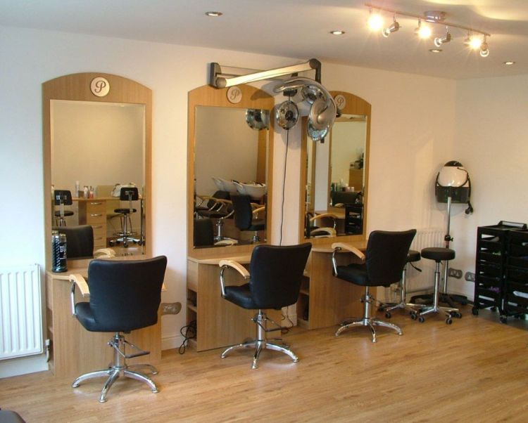 Salah satu denah paling ideal untuk salon rambut terutama pada ruang terbatas adalah tata semua kursi dan kaca di satu sisi dinding yang sama, sehingga ada banyak sisa ruang untuk lalu lalang.