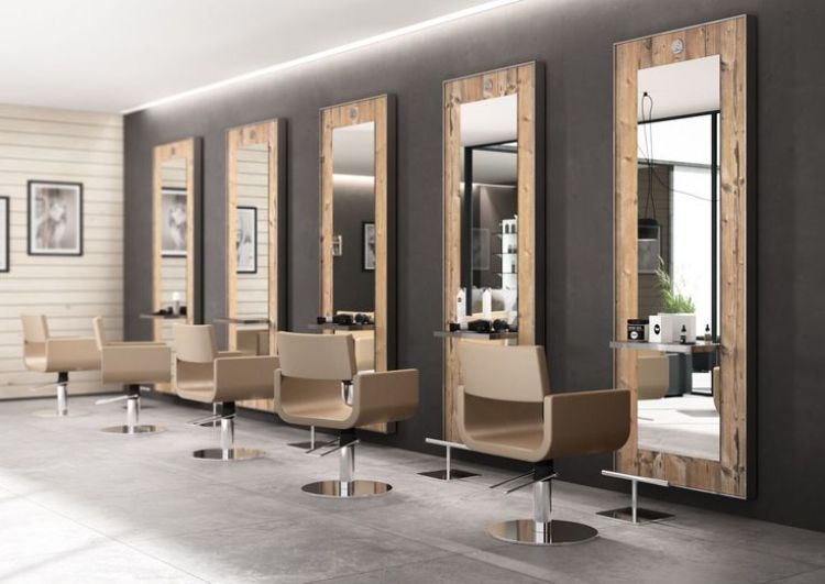 Ingin desain interior salon yang unik? Maka Anda bisa pilih kaca besar berbingkai kayu sebagai yang bisa berfungsi ganda sebagai partisi ruang. Jadi Anda bisa bagi ruang menjadi area khsus perempuan dan pria, atau bisa juga untuk memisahkan ruang tunggu dan ruang potong rambut.