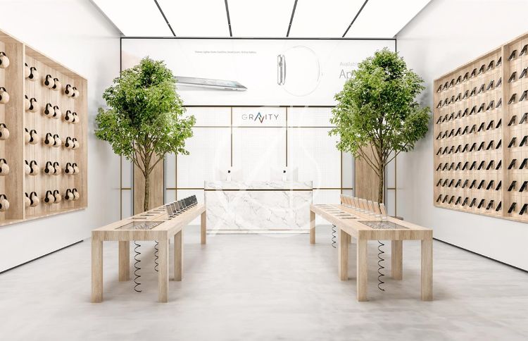 Konsep desain toko ini hampir sama seperti konsep desain pada contoh toko nomor 10. Lonsepnini menggunakan desain bernuansa industrial dengan pemilihan warna gelap. Untuk menambah kesan terangnya, desain ini hanya menggunakan dinding kaca di salah satu sisi.