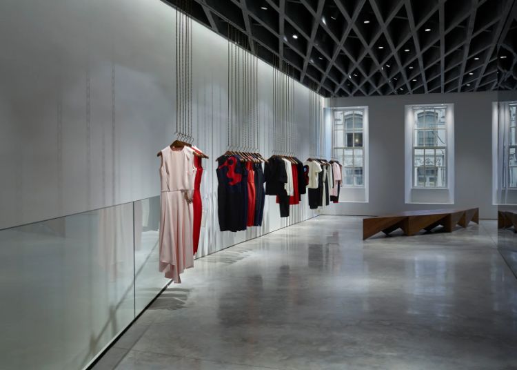Sedangkan pada dindinhnya dibuat seperti garis-garis pagar yang semakin menonjolkan nilai seni toko tersebut. Tentu saja pada bagian atasnya dipenuhi dengan lighting yang sempurna sehingga produk akan tetap terlihat lebih jelas.