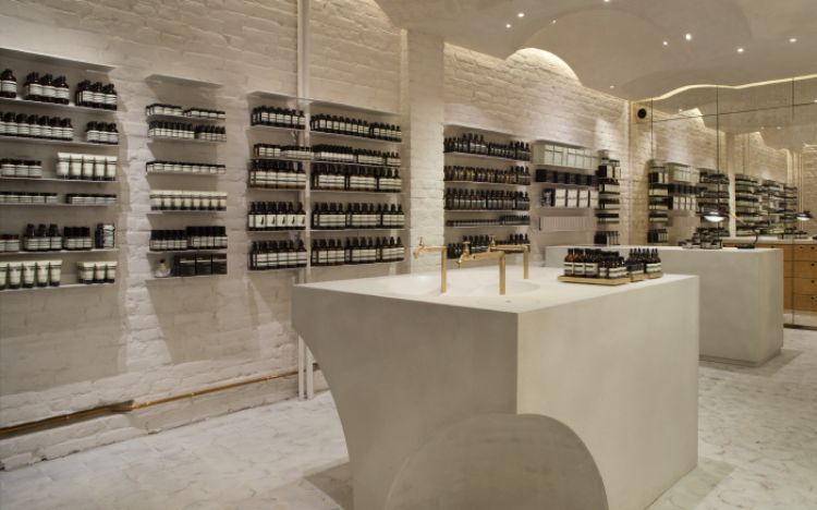 Sebagaimana nama dari konsep desain ini, toko seperti gambar di atas memang dibuat dengan penataan yang terlihat luas. Toko tersebut memberikan space atau ruang kosong yang cukup luas dejhan beberapa kursi yang ada di sudut-sudut toko.