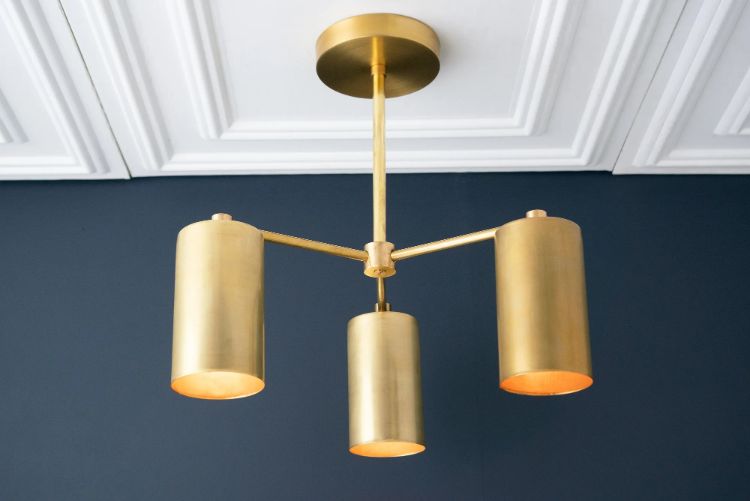 Tiga buah lampu bercabang dari dudukan bulat yang menempel ke plafon. Aliran listrik dihubungkan melalui sambungan yang ada di dalam percabangan. Model fitting lampu ini cocok untuk menyinari ruangan besar karena cahaya menyebar ke setiap sisi.