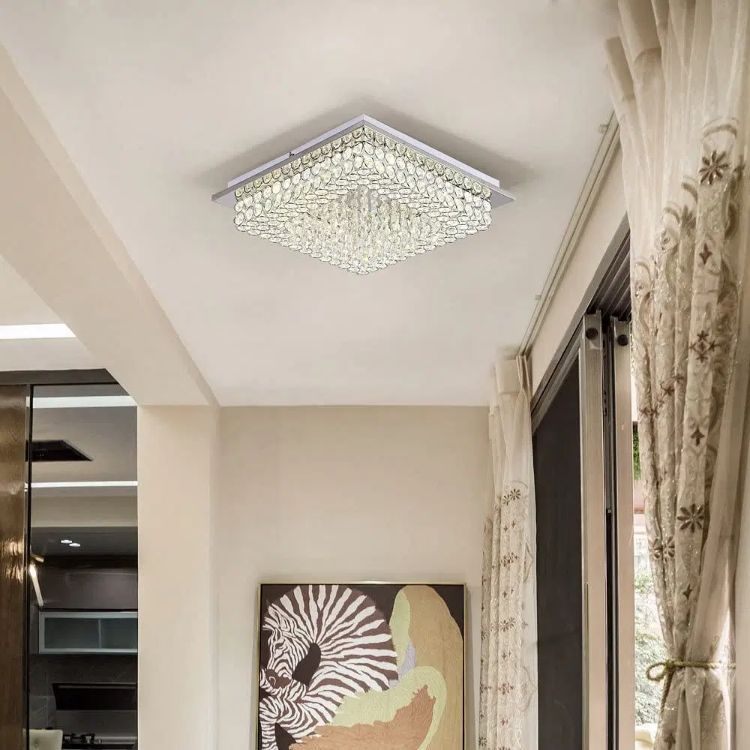Model rumah lampu langit-langit kristal sangat cocok dipasang di rumah dengan konsep mewah ataupun klasik. Fitting lampu berbentuk seperti susunan kristal berwarna putih terang yang membuatnya tampak sangat menawan saat dipasang.