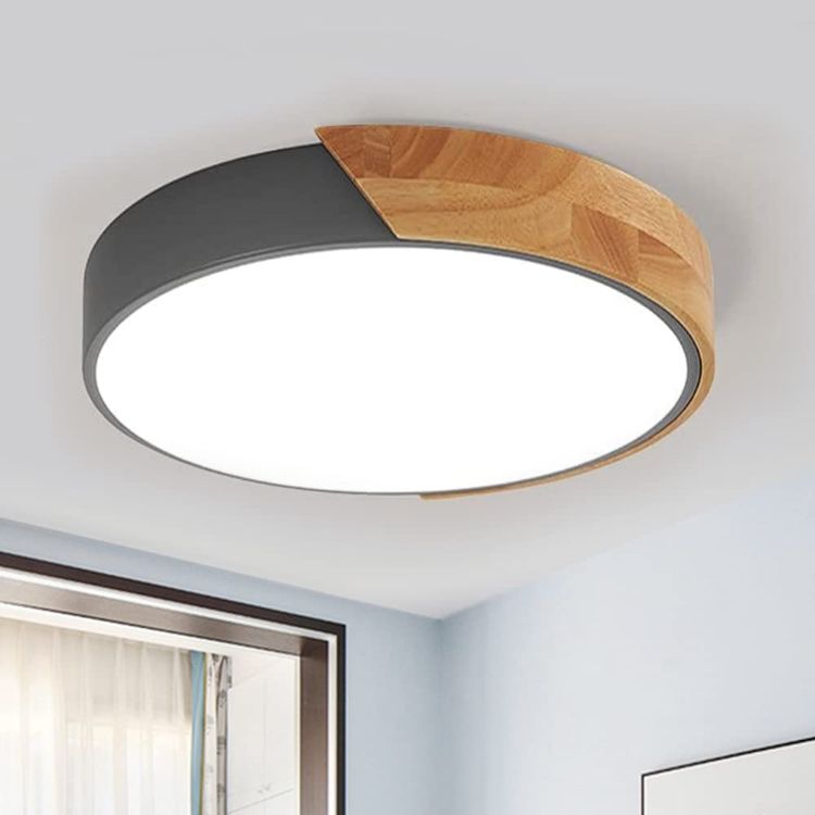 Inspirasi desain interior ruangan bisa datang dari mana saja tak terkecuali dari alam. Model rumah lampu ini dibuat dengan model seperti batok kelapa yang terbelah dua. Bagian luar fitting lampu plafon minimalis dicat dengan warna pastel abu-abu.