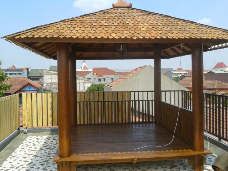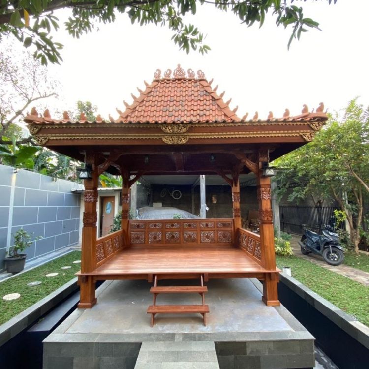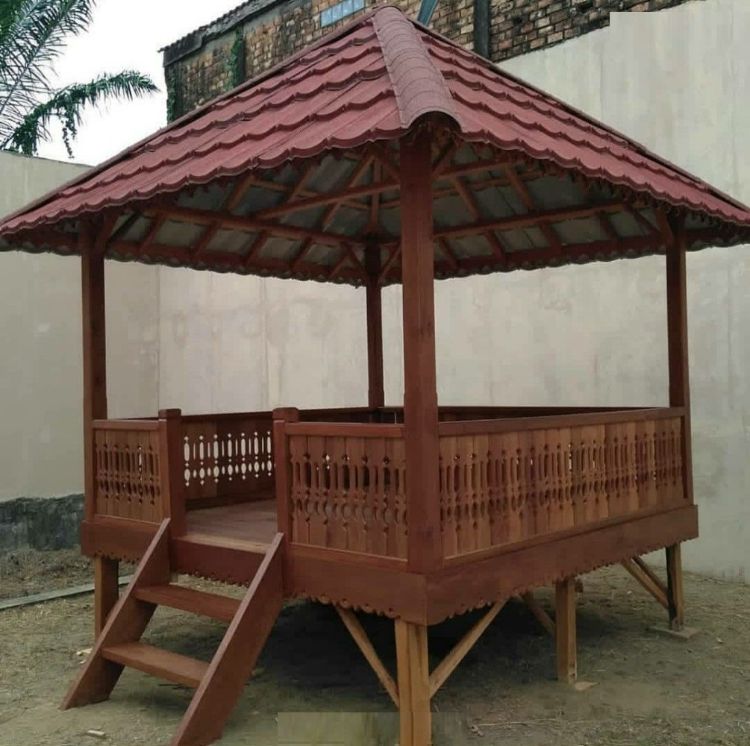 Gazebo Minimalis dengan Desain Atap dan Ukiran yang Unik
