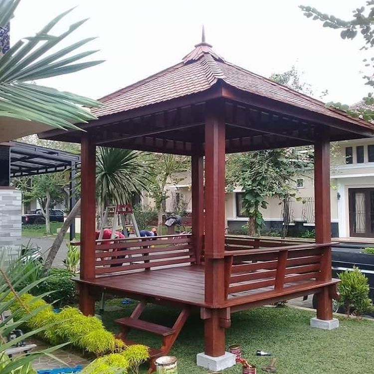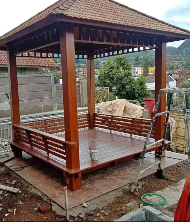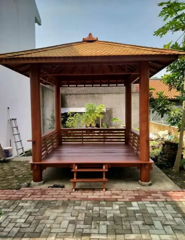 3. Gazebo Kayu Minimalis dengan Cat Mengkilap