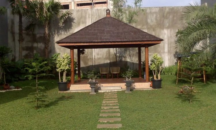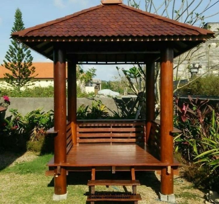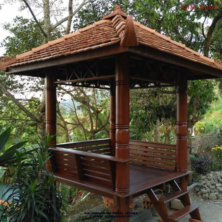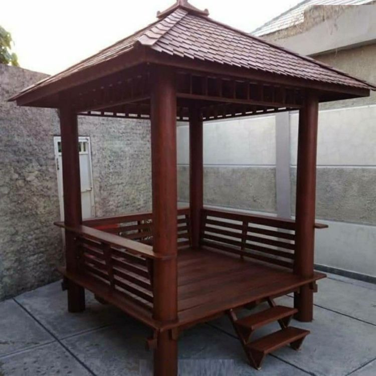 Gazebo minimalis selanjutnya adalah contoh gazebo yang biasa terletak di bangunan keraton atau bangunan rumah adat Jawa pada umumnya. Bangunan gazebo seperti pada gambar di atas bisa Anda gunakan apabila rumah Anda kental dengan adat Jawa.