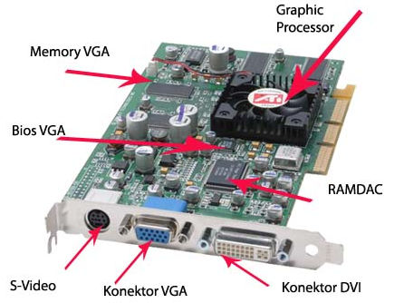 Hal ini penting untuk tampilan visual dalam aplikasi seperti permainan, desain grafis, video editing, dan pekerjaan grafis lainnya. Kartu VGA berisi port yang memungkinkan monitor terhubung ke komputer dan memiliki berbagai spesifikasi.