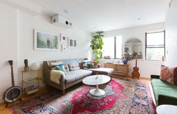 Tidak perlu memilih hiasan rumah yang terlalu besar untuk dipasang di ruang tamu, karena hiasan rumah ini dapat disesuaikan dengan dekorasi lain yang sudah ada di dalamnya. Bagi orang-orang yang menggunakan karpet berwarna merah seperti ini, pilih hiasan rumah dengan warna yang lebih tenang.