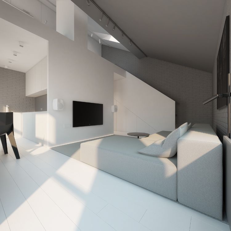 Selanjutnya ada desain yang super minimalis dan simpel. Interior ini menampilkan nuansa ruangan yang sangat sederhana dan tidak memiliki banyak properti. Terlihat lebih rapi meski sebenarnya ruangan ini tidak seberapa luas.