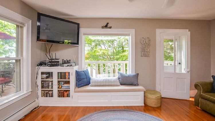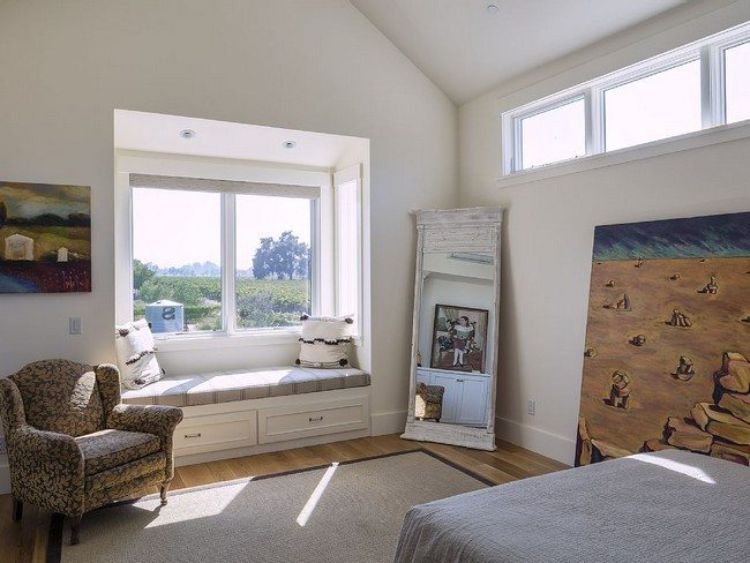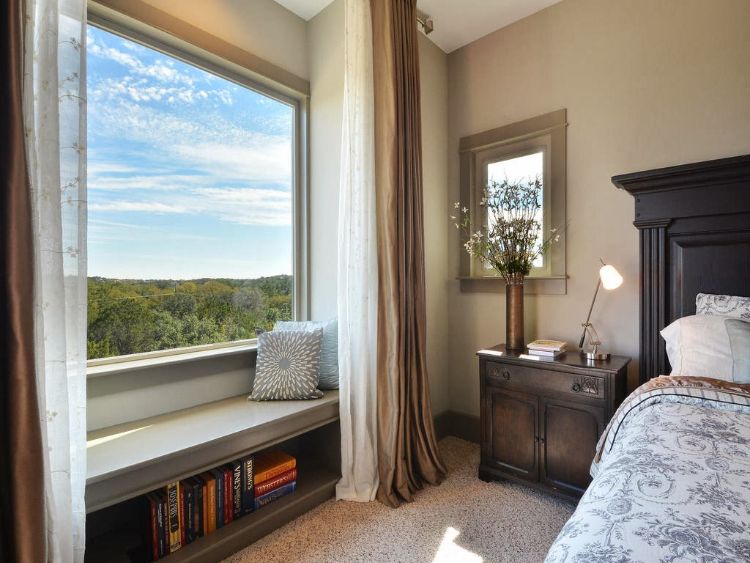 Terdapat dua bagian daun jendela, sisi kanan dan sisi kiri. Tepat di belakang jendela terdapat tempat duduk nyaman yang bisa digunakan untuk bersantai sambil melihat pemandangan kota luar hunian tersebut. Model seperti ini sangat cocok untuk interior rumah semi modern.