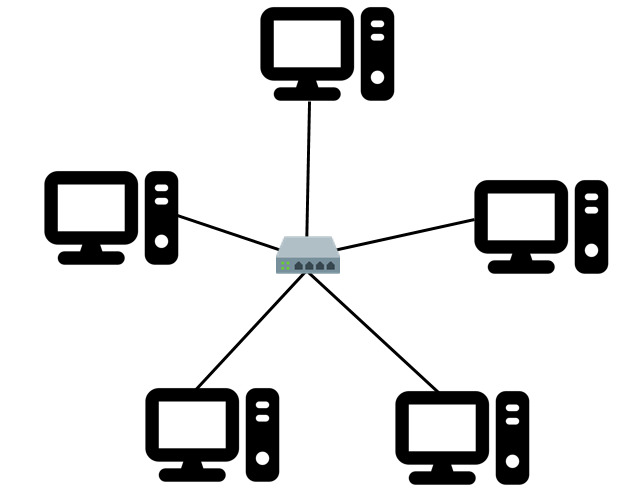 Ini adalah topologi yang menggunakan hub atau switch untuk menghubungkan antar client. Kelebihannya meliputi kestabilan jaringan meskipun satu komputer bermasalah, tingkat keamanan data yang tinggi, kemudahan dalam mendeteksi masalah, dan fleksibilitas.