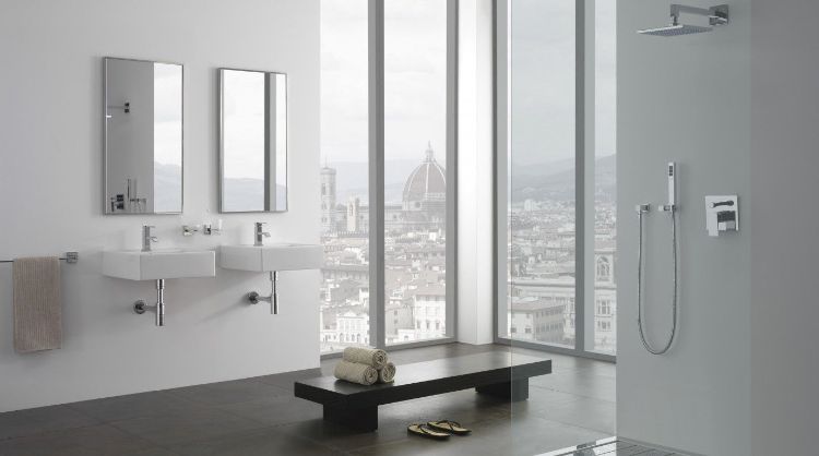 Siapa bilang Anda tidak bisa mendapatkan kamar mandi dengan view kota yang menarik. Jika Anda tinggal di apartemen, maka desain ini bisa menjadi salah satu alternative. Berikan jendela di bagian sudut untuk menghadirkan pemandangan selagi berada di dalam kamar mandi.