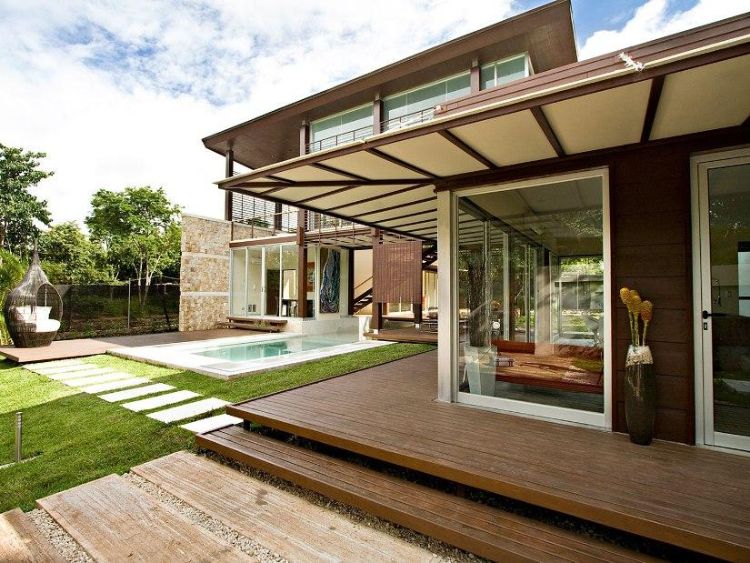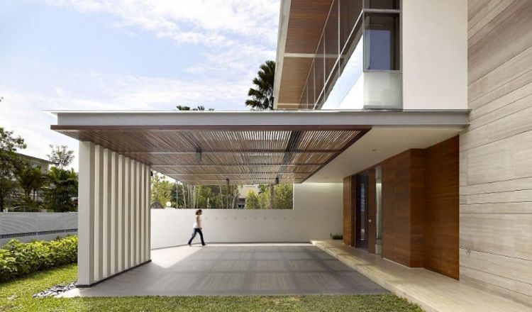 Kesan minimalis dari kanopi yang memiliki rangka dari kayu ini sangat terasa. Selain bisa menjadi sebuah tempat yang memiliki nilai fungsionalitas tertentu, kanopi ini juga bisa memberikan kesan rumah yang elegan serta nyaman.