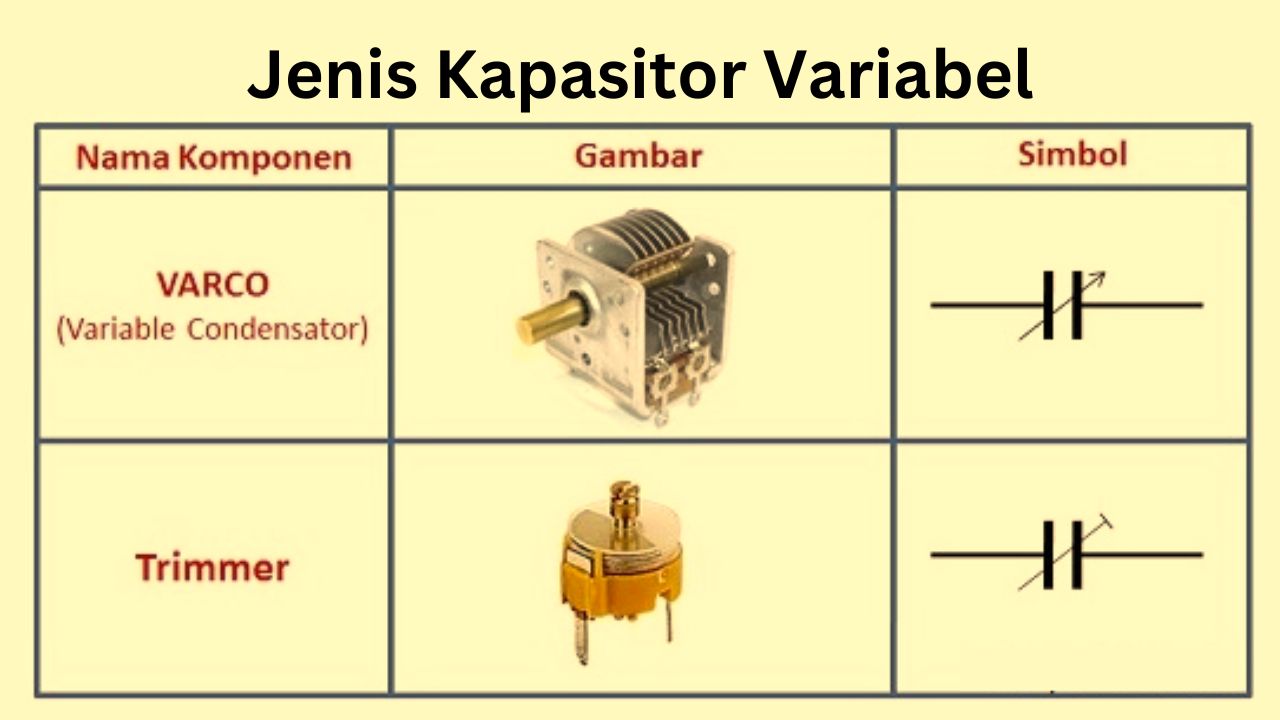 Kapasitor adalah jenis komponen yang dapat digunakan untuk menyimpan muatan listrik dan sering disebut juga dengan nama kondensator. Kapasitor tidak hanya terdiri dari satu jenis saja, tapi komponen ini terdiri dari beberapa jenis yang berbeda, tak terkecuali kapasitor variabel.