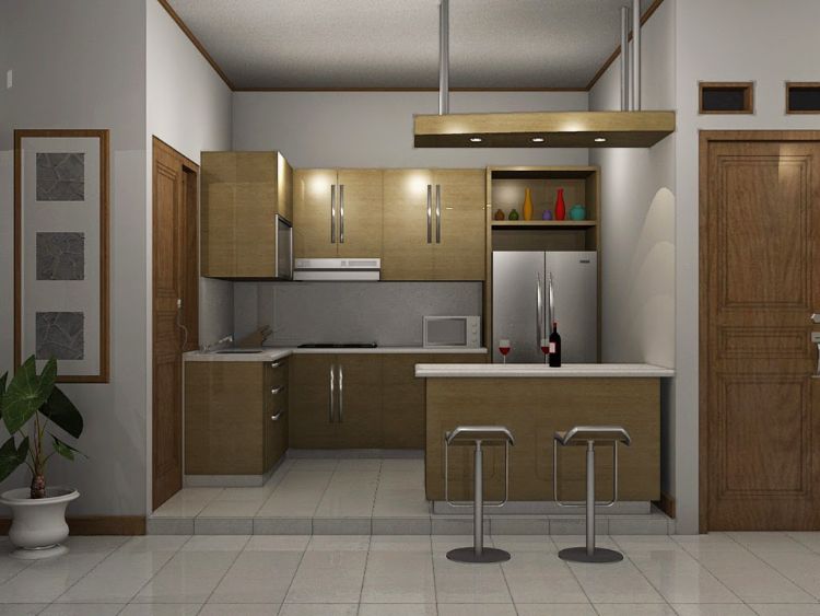 Apabila Anda menginginkan kitchen set dengan ukuran yang tidak terlalu besar, namun masih tetap memberikan kesan yang elegan. Maka bisa dengan memilih bahan baku dari kayu atau bisa menggabungkan warna-warna yang bersifat natural.