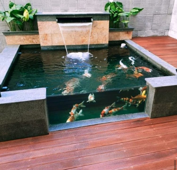 2. Kolam Koi Berukuran Minimalis dengan Desain Kaca