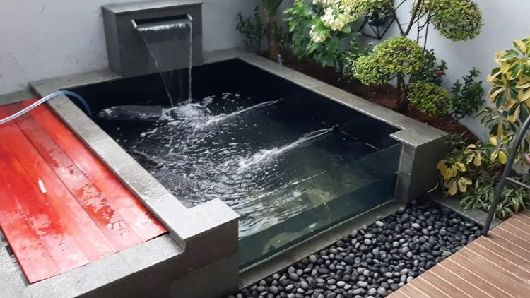 Pada umumnya kolam koi minimalis didominasi dengan air terjun yang indah yang menghiasi kolam tersebut. Ini berfungsi untuk menjaga aliran air dalam kolam agar tetap stabil, sehingga sirkulasi air tetap terjaga dan selalu bersih.