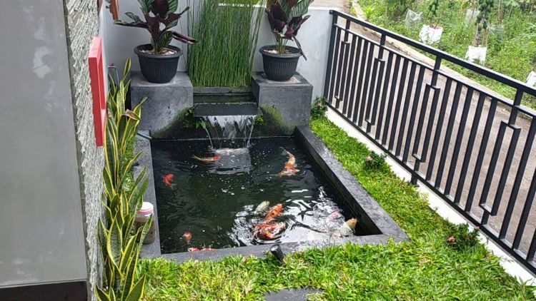 1. Kolam Koi yang Luas di Samping Rumah