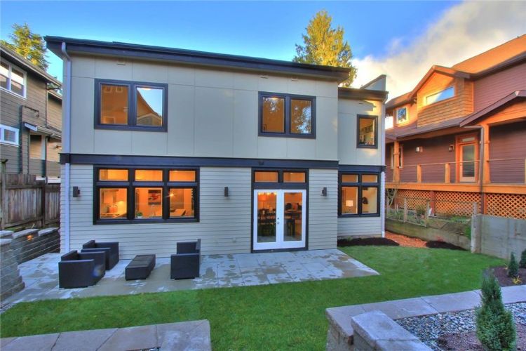 Tembok eksterior rumah minimalis dua lantai ini dicat dengan warna beige yang netral di lantai atas. Sementara tembok lantai pertama rumah dibuat dari papan kayu yang disusun secara horizontal.