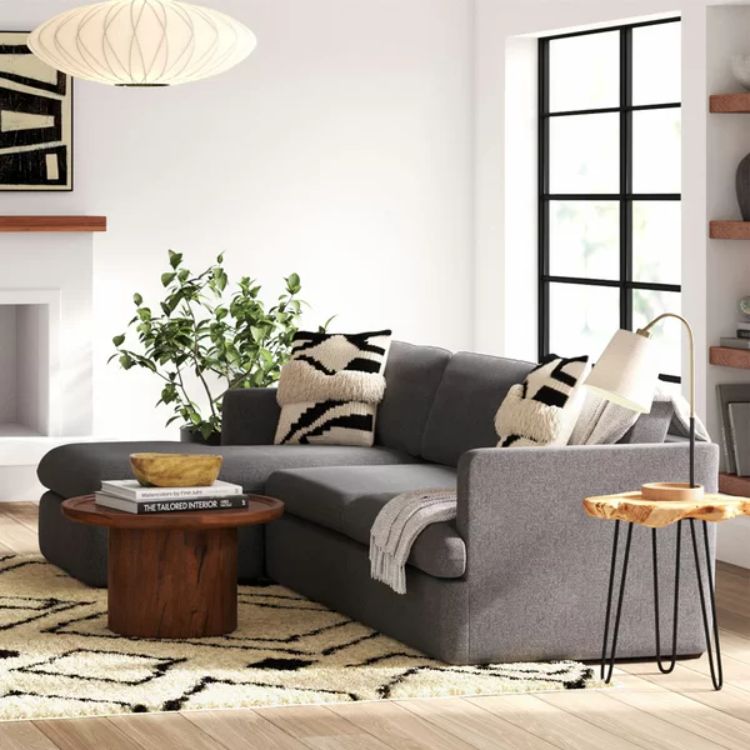 Cari desain minimalis supaya Anda bisa menambahkan aksen-aksen menarik lainnya, seperti sofa bentuk huruf L ini.