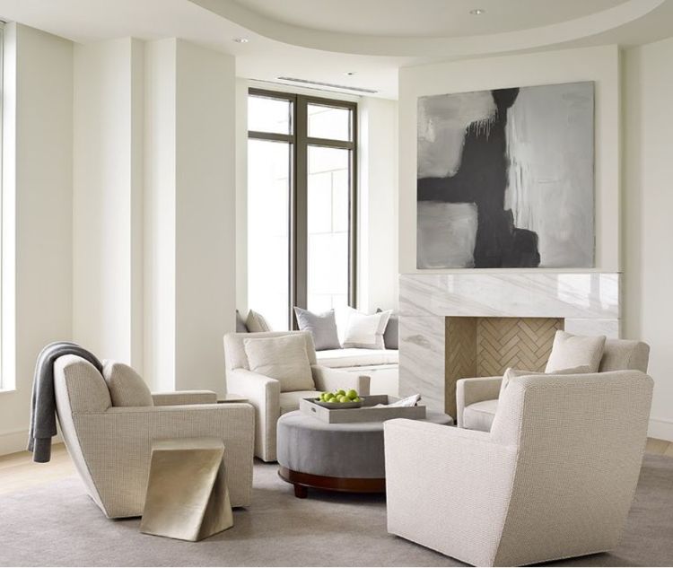Sofa dengan bentuk kotak ini sudah mempunyai daya tariknya tersendiri. Cukup posisikan ketiga sofa di depan perapian dengan meja bundar di tengahnya. Padu padankan dengan benda-benda berwarna gelap, seperti selimut abu tua dan lukisan hitam putih.
