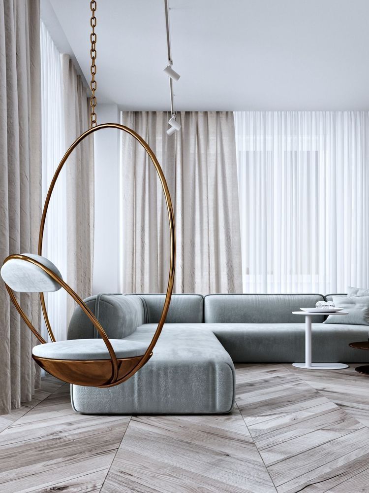 3. Padukan Sofa dengan Kursi Gantung Modis