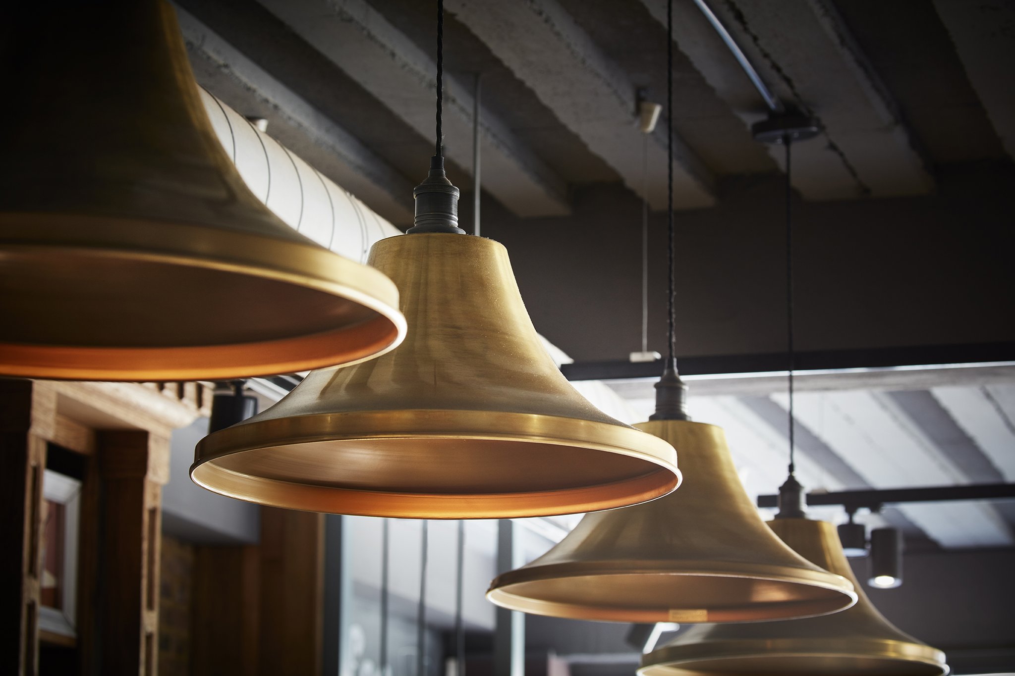 Dibandingkan lampu pijar, lampu halogen memang lebih efisien, meski masih belum sebanding dengan lampu LED. Contohnya, lampu gantung bergaya industrial yang menggunakan sumber cahaya halogen berwarna kuning mampu menciptakan suasana yang dinamis sekaligus nyaman.
