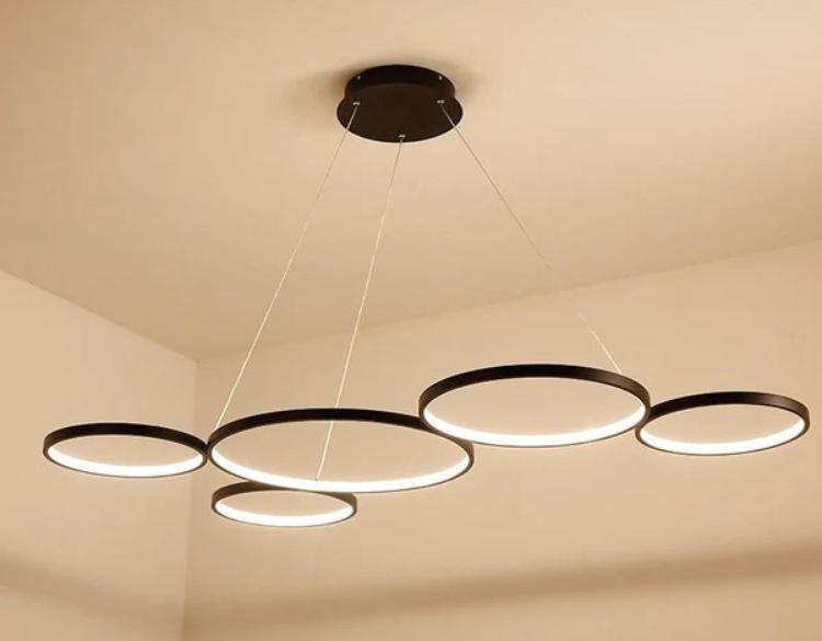 Ternyata light ring yang biasanya Anda lihat dan gunakan untuk penerangan kamera bisa jadi referensi yang bagus dalam membuat lampu hias. Seperti model yang ada di gambar, Anda bisa menggunakannya untuk ruangan makan atau tamu yang cantik.