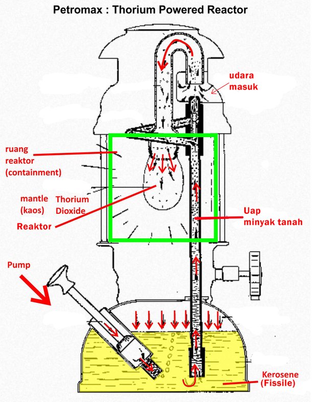 - Setelah memastikan sarung lampu (mantle) terpasang dengan benar, jarum tembakan minyak sudah pas, dan tidak ada yang kotor, maka pastikan tangki terisi minyak tanah.