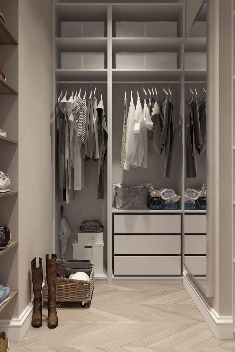 Desain lemari minimalis dengan kombinasi warna putih menimbulkan nuansa netral pada ruangan. Dengan demikian untuk menyesuaikan dengan desain ruangan dapat lebih mudah. Jenis lemari ini sangat cocok untuk Anda yang tidak menyukai sesuai hal yang mencolok.