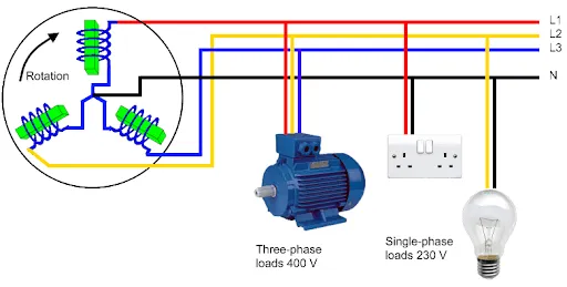 Jenis listrik ini pada umumnya terdiri atas 3 kabel yang bertegangan listrik serta 1 kabel netral. Secara umum, listrik jenis 3 phase memiliki tegangan hingga 380 V yang banyak dipakai untuk berbagai macam kebutuhan industri maupun pabrik.