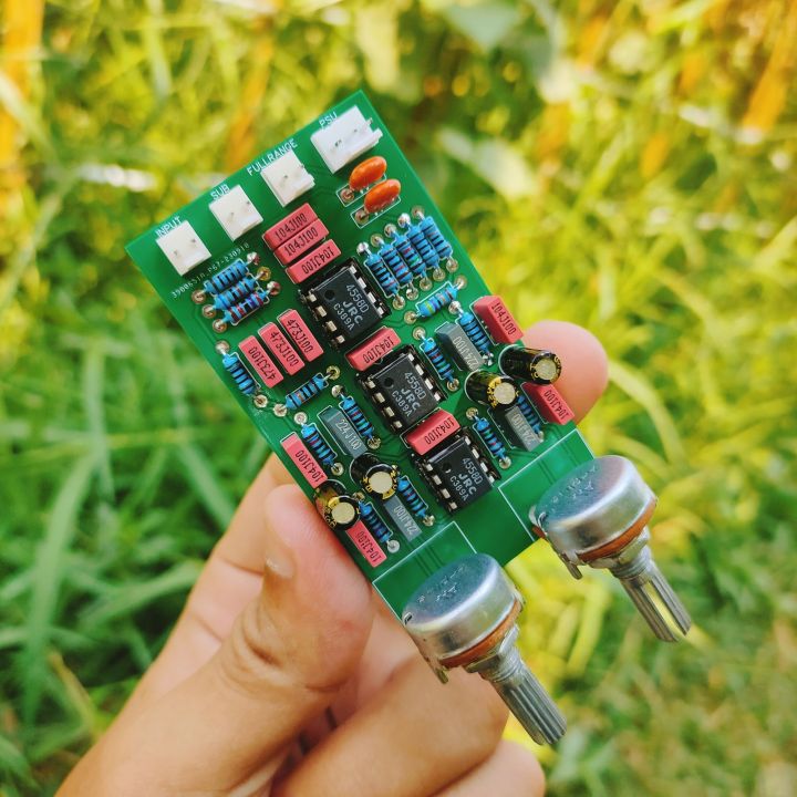 Jenis ini merupakan bagian dari sirkuit yang frekuensinya antara 0-20 kHz. Mampu meningkatkan dan juga melemahkan frekuensi. Umum ditemui pada perangkat elektronik seperti radio dan televisi. Namun juga menjadi komponen penting dalam Hi-Fi Stereo dan amplifier untuk instrumen.