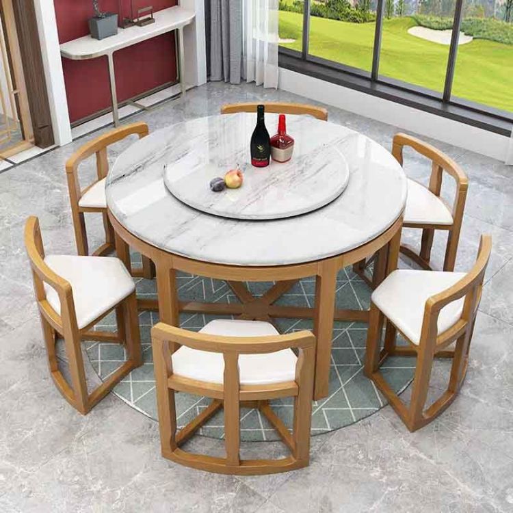 Sementara untuk kerangka utama meja dibuat dari material solid wood atau kayu utuh sehingga kokoh dan kuat menopang marmer. Kursi dibuat dari kayu dengan sandaran di bagian punggungnya.