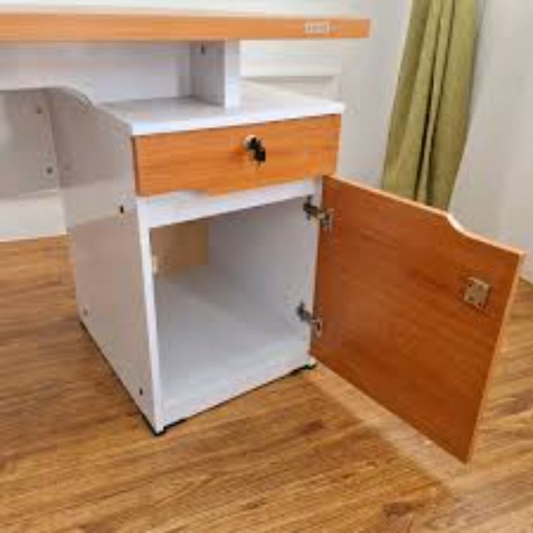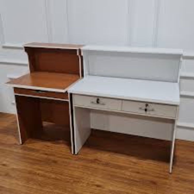 Meja kasir yang ada dalam gambar di atas merupakan meja kasir yang bisa disambung atau digabung dalam satu ruangan. Tidak menutup kemungkinan akan ada dua kasir dalam 1 toko dan kantor. Hal tersebut juga akan memudahkan informasi dan komunikasi antar dua orang kasir.