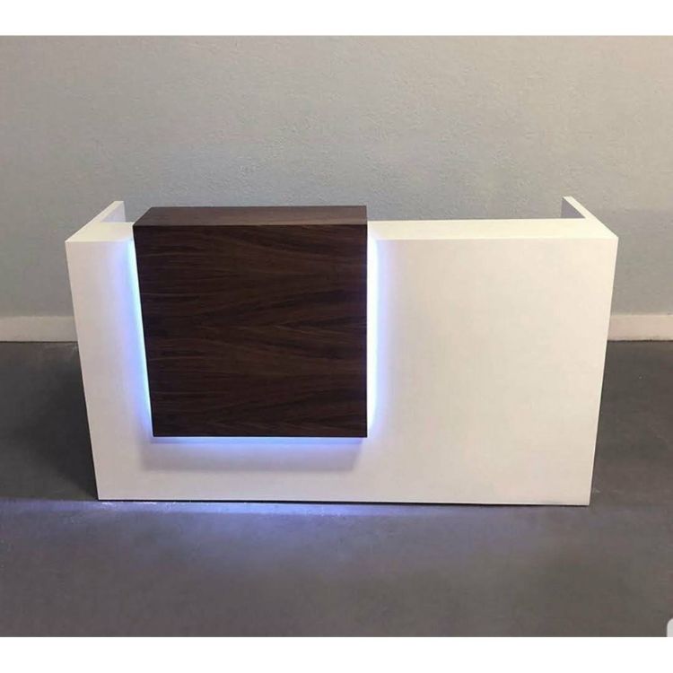 Kesan elegan dari meja ini dipancarkan oleh sinar LED yang berasal dari kotak coklat di sisi depan meja. Model seperti ini sangat pas Anda gunakan untuk ruangan depan toko atau kantor yang sangat banyak menerima pelanggan.