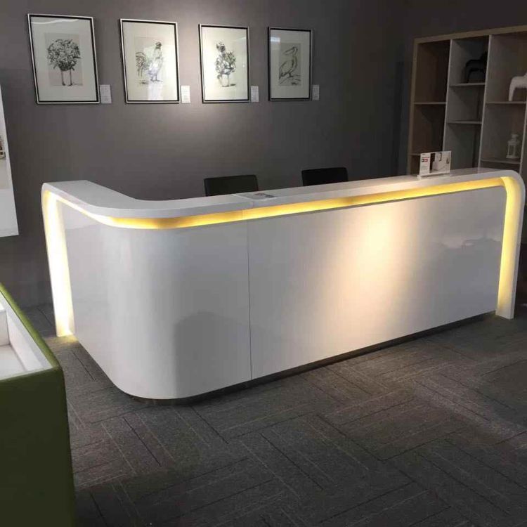 Meja dengan model tersebut pada umumnya dipakai untuk receptionist hotel atau perkantoran yang menjalankan bisnis cukup besar.