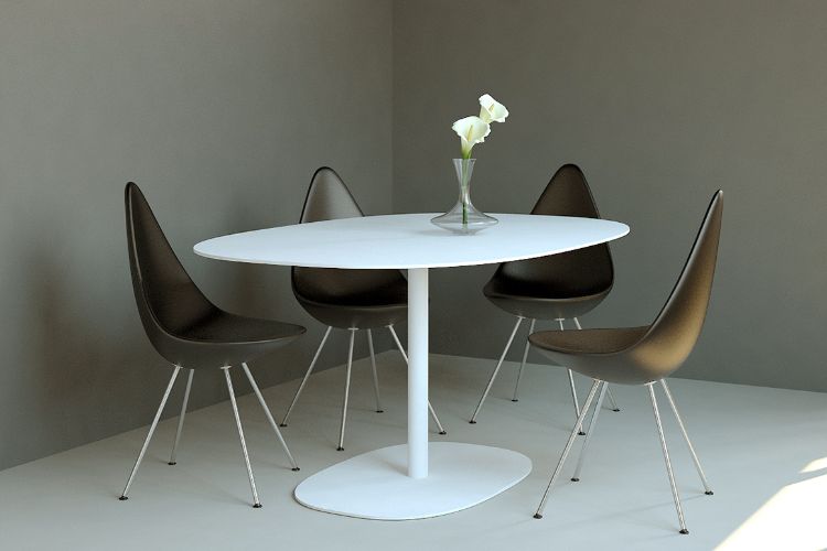 Meja makan minimalis ini cocok untuk Anda yang menginginkan tampilan kontemporer yang ramping. Padukan dengan beberapa elemen mangkuk dan vas tanah liat sebagai sentuhan akhir.