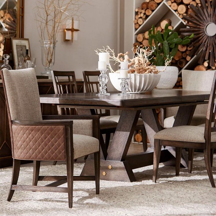 Beberapa kursi memiliki sandaran lengan untuk membuatnya terlihat mewah. Gunakan beberapa benda keramik apabila ingin meja makan semakin spesial.