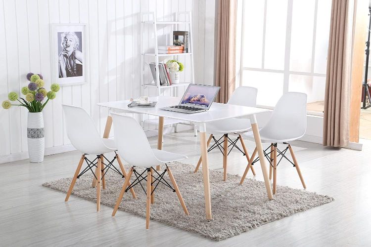 Desain meja makan yang sering muncul di sosial media ini memang sudah umum. Namun kesederhanaan sekaligus keindahan dari set meja makan ini tidak menurunkan minat orang. Ruang makan yang bermandikan warna putih terlihat lebih modern dan bersih.