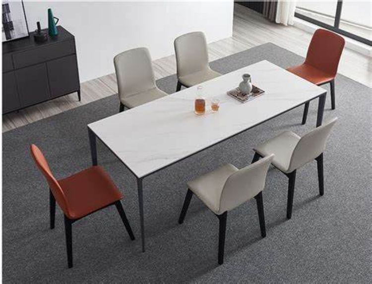 Memilih meja makan modular dengan detail yang unik untuk ruang makan minimalis mungkin preferensi Anda. Pada bagian bawah meja makan dipasangkan karpet minimalis yang lembut. Set meja makan ini cocok diletakkan di rumah para pecinta seni.