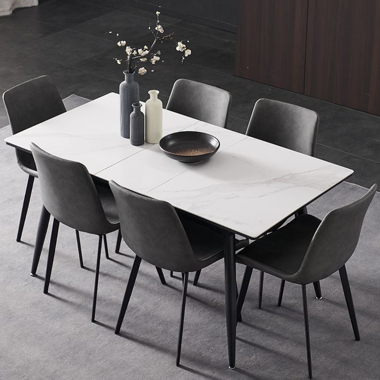 Meja berkaki runcing ini mempunyai desain marmer nan modern, Kursi hitam pekat didesain dengan model curvy, yaitu model yang sering ditemukan pada inspirasi rumah minimalis.