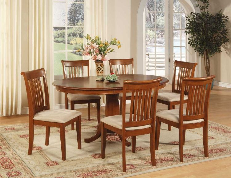 Tampilan meja dibuat mengkilap setelah melalui proses penghalusan dan pengecatan menggunakan pernis. Meja ini mampu menampung 8 orang sekaligus dan semuanya bisa makan dengan nyaman. Gunakan vas bunga kaca untuk memperindah meja.