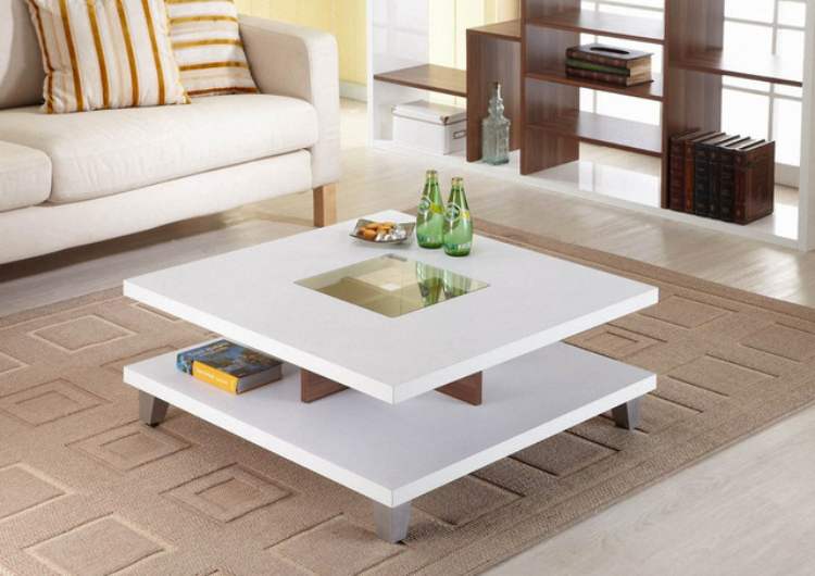 Model meja tamu kayu minimalis terbaru satu ini bisa dibilang sangat unik karena terdiri dari tumpukan papan kayu yang disusun sedemikian rupa sehingga terlihat memiliki dua tingkat. Meja pada tingkat atas dicat berwarna putih halus.